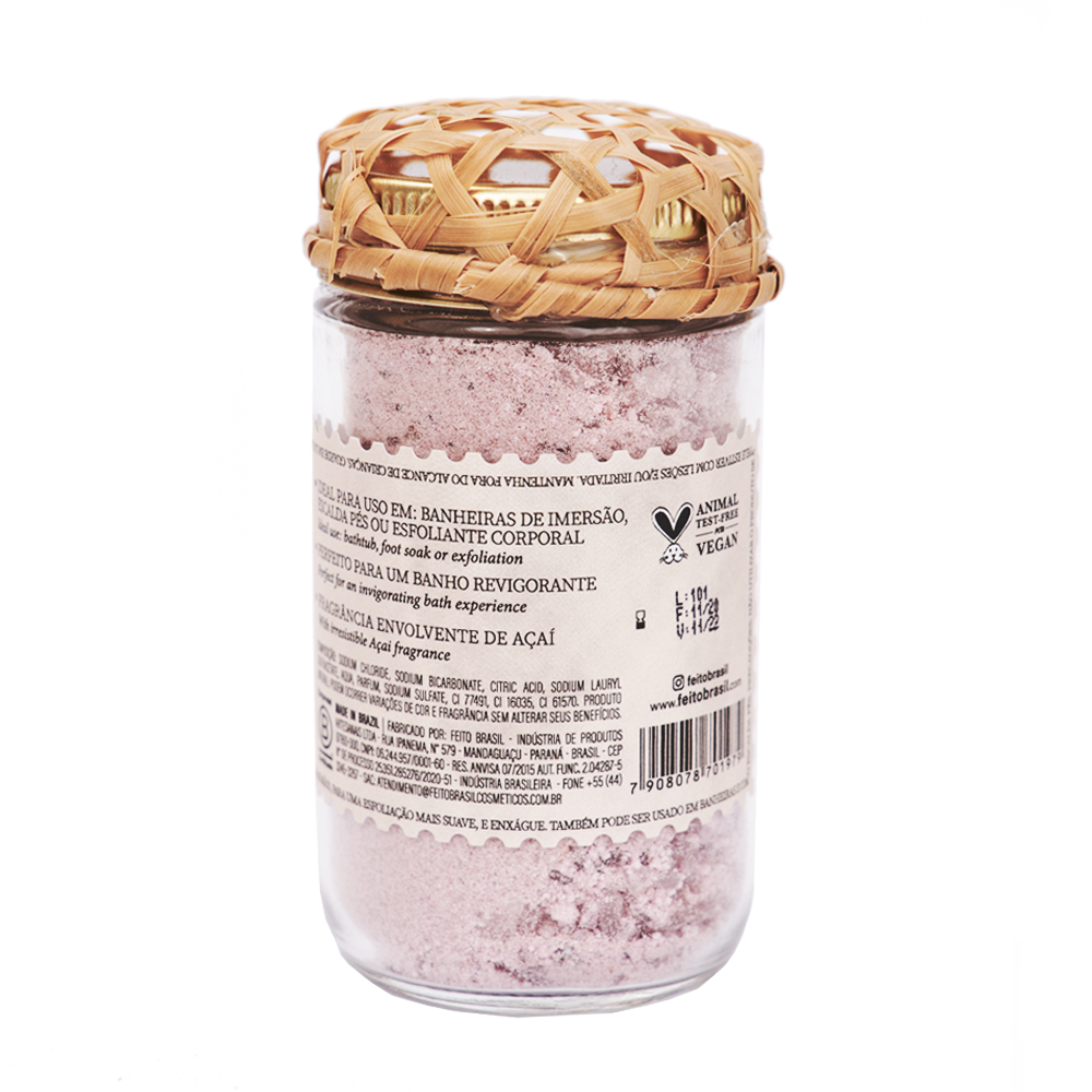 An inspiring bathing moment with the energy of nature! The Açaí Chopp brings the strength of Amazonian fruits to a renewal experience in a sparkling, invigorating and relaxing bath. Bath Salt can be used in the bathtub and in the scorching feet, for an unforgettable immersion, or in the loofa, for a slight exfoliation. It comes with a basketry handmade in Guarumã fiber by artisans from Pará.