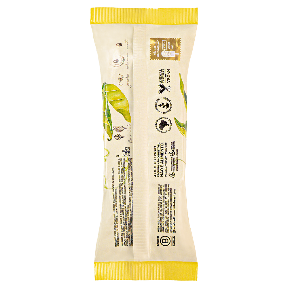 Composition: ALCOHOL, PALM OIL (ELAEIS GUINEENSIS), WATER, GLYCERIN, BABAÇU SEED OIL (ORBIGNYA OLEIFERA), SODIUM HYDROXIDE, GLUCOSIDE DECYL, PERFUME, RICE WAX (ORYZA SATIVA), BAMBOO STEM POWDER (BAMBUSA ARUNDINACEA), SODIUM METHYL COCONUT TAURATE, PASSION FRUIT SEED POWDER (PASSIFLORA EDULIS), SODIUM CHLORIDE, CI 19140, COCONUT ACID, SODIUM METHYLTAURATE, TOCOFEROL.