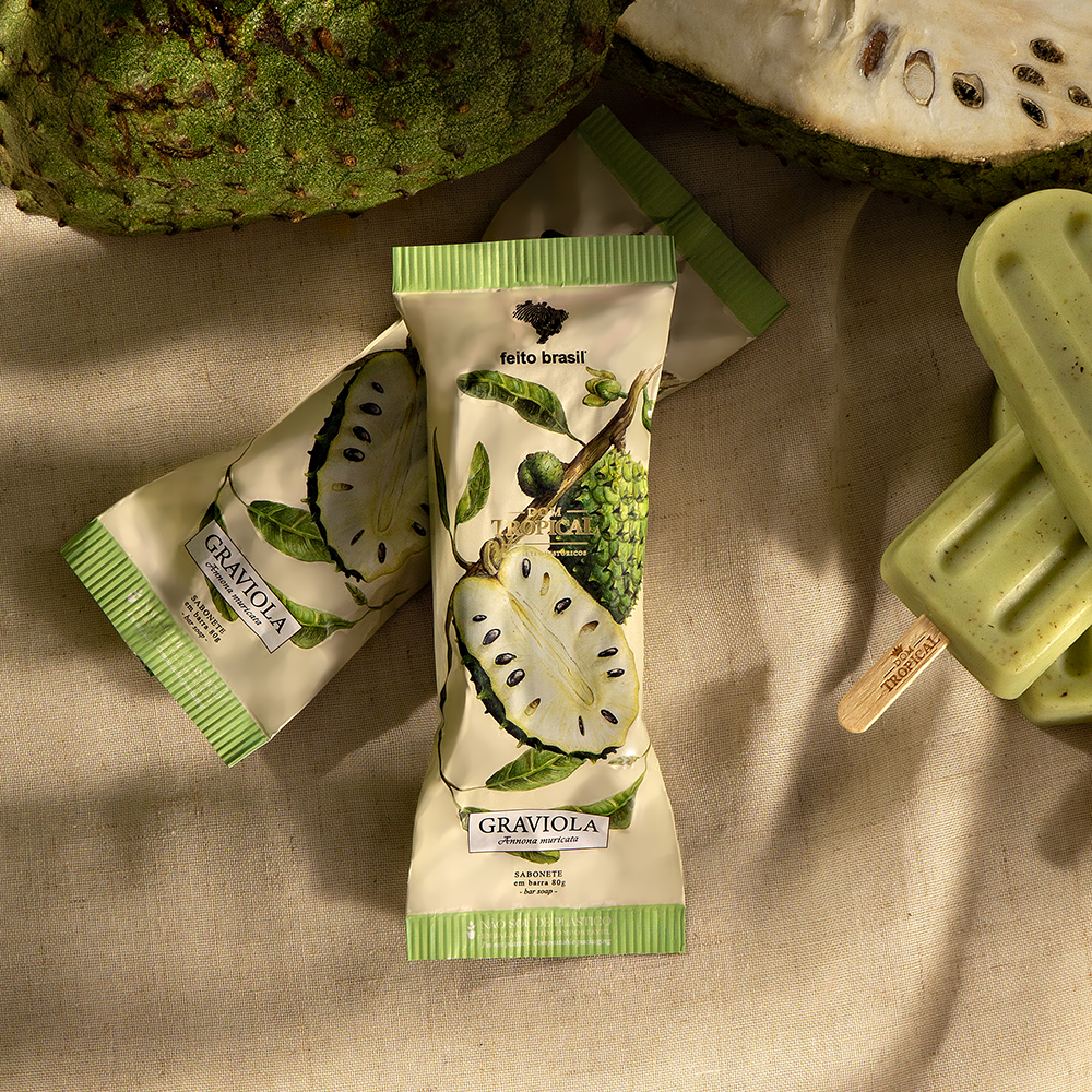 Soursorsop: natural exfoliation with anti-inflammatory properties. Rich in vitamins C and A, it fights free radicals. Soft, radiant and uniform skin.
