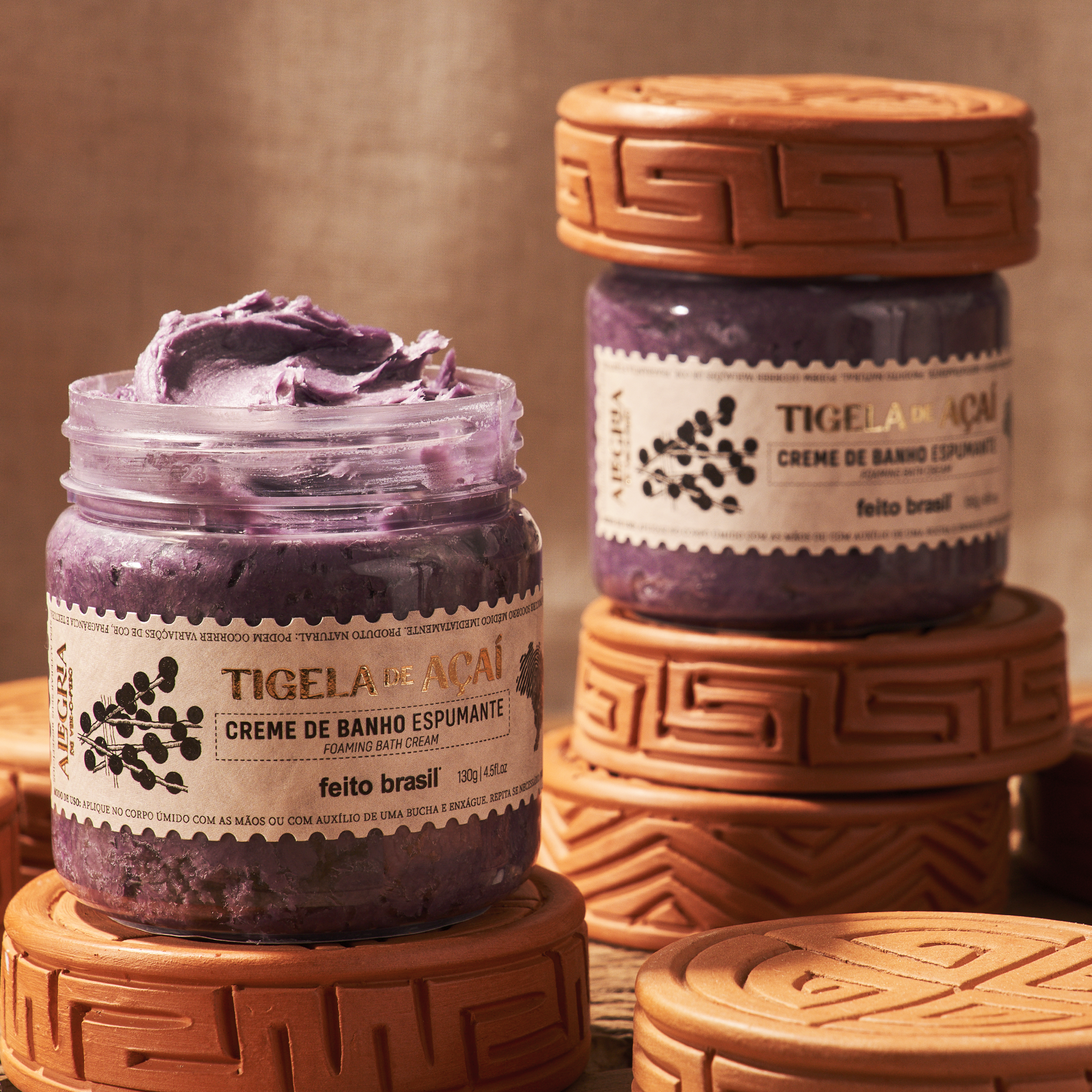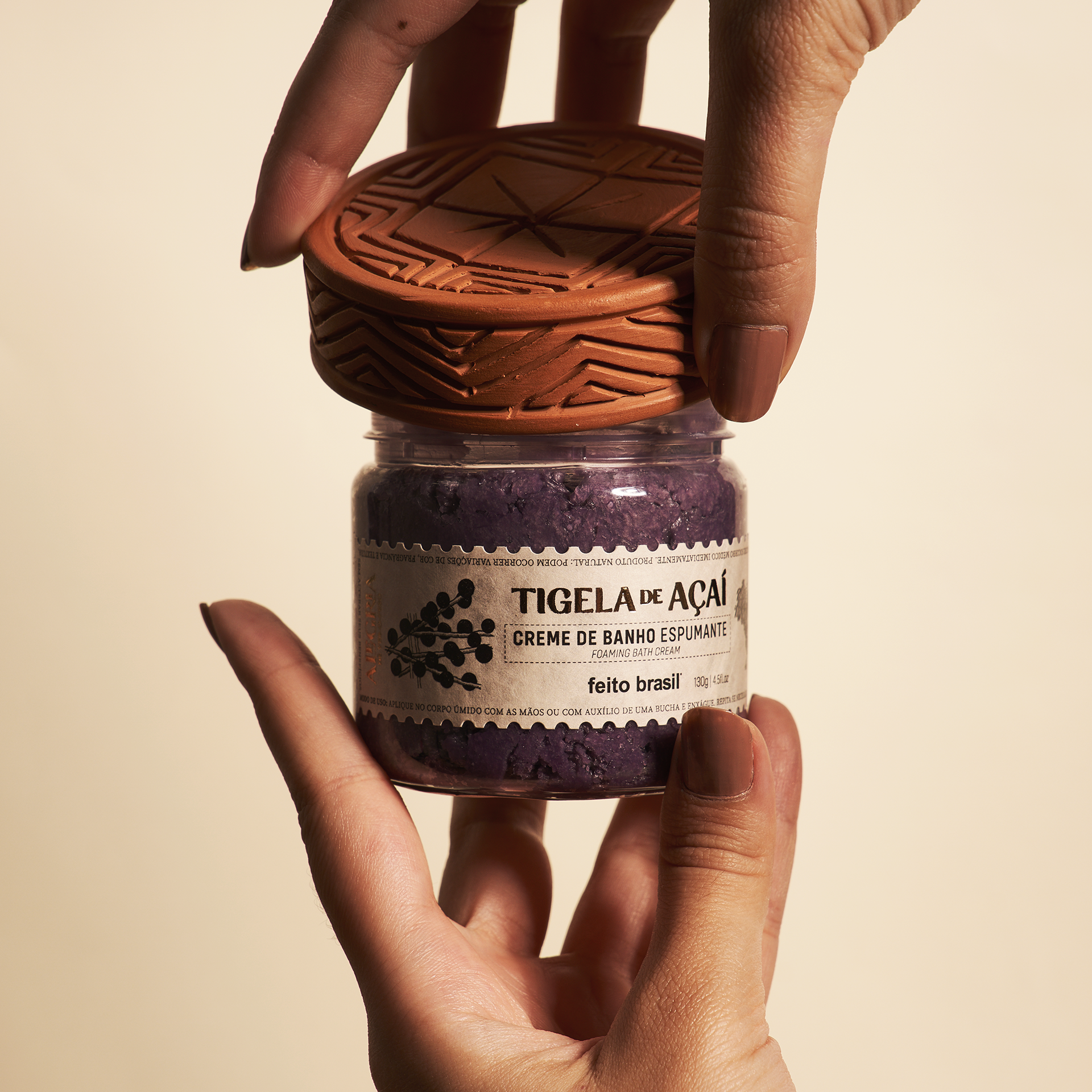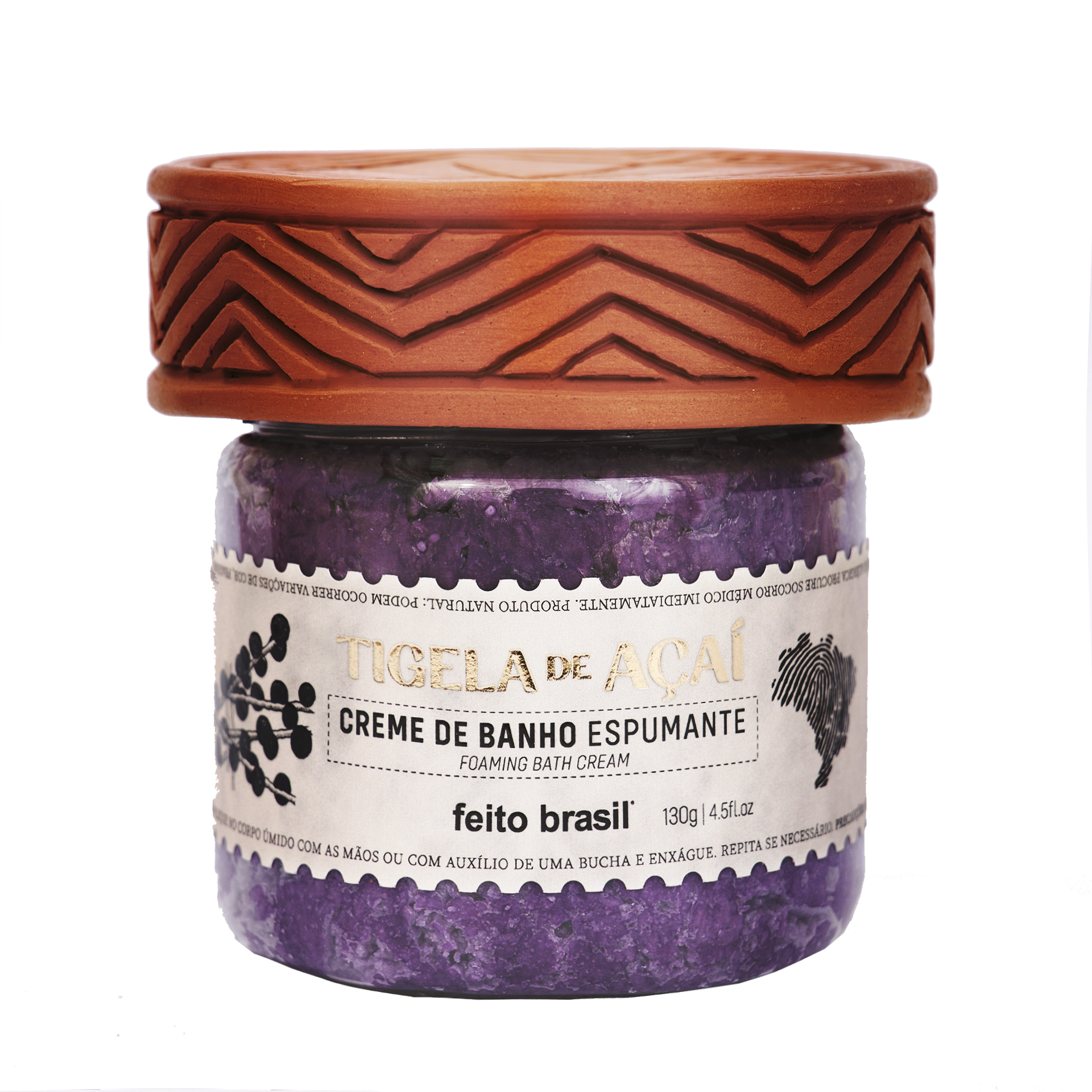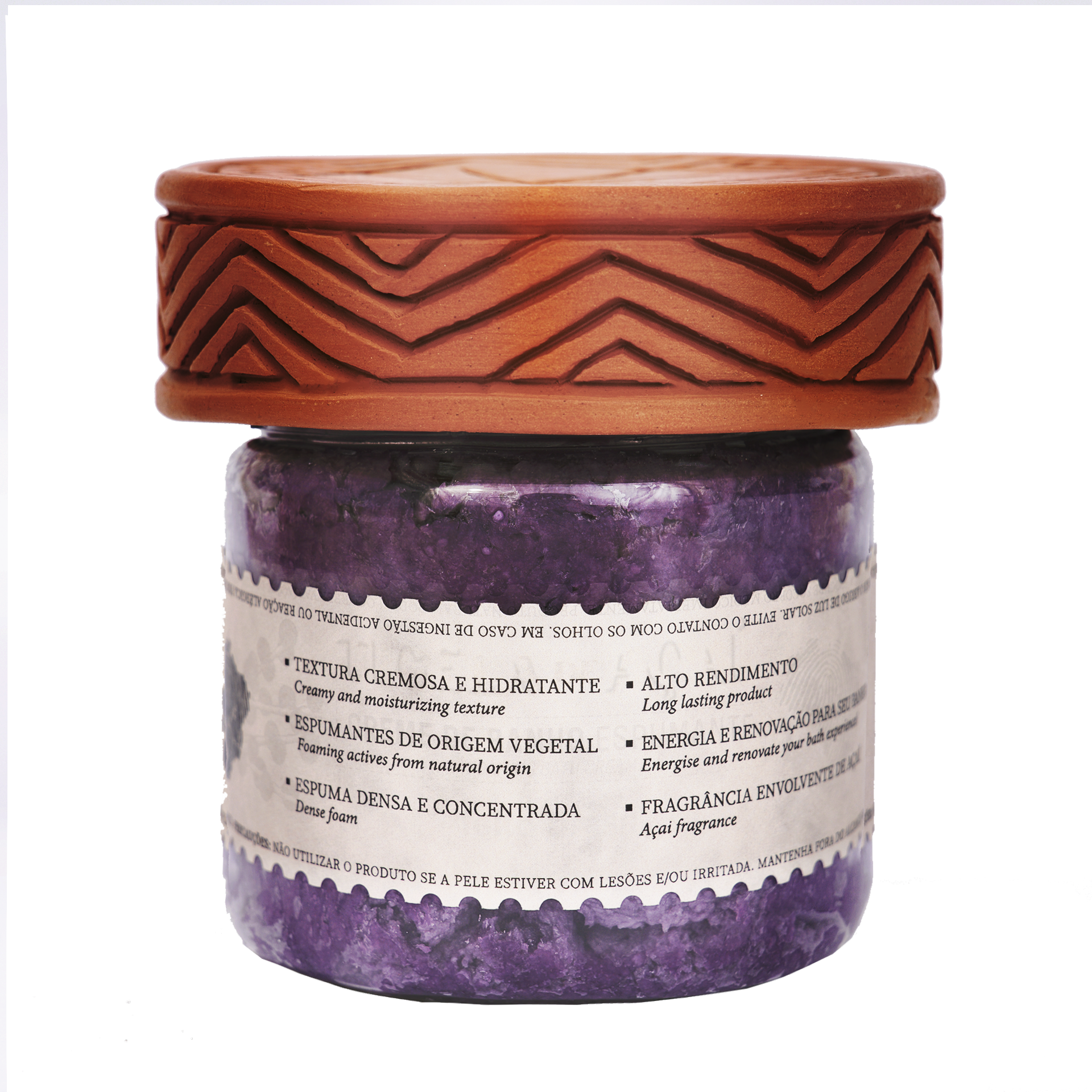 A unique experience of bathing and culture! The Açaí Bowl Sparkling Bath Cream offers a rich moment of hydration and contemplation of the Brazilian Amazon rainforest, with the unique aroma of Açaí. A bath cream with soft foam biocompatible with the skin. Moisturizes and takes care of the body with the unforgettable fragrance of Acaí. With mild surfactants from Coconut and Corn, the Açaí Bowl proposes a moment of hydration and energizing in an incomparable experience of self-care, relaxation and fragrance. Each bottle accompanies a Marajoara ceramic with unique handmade designs.