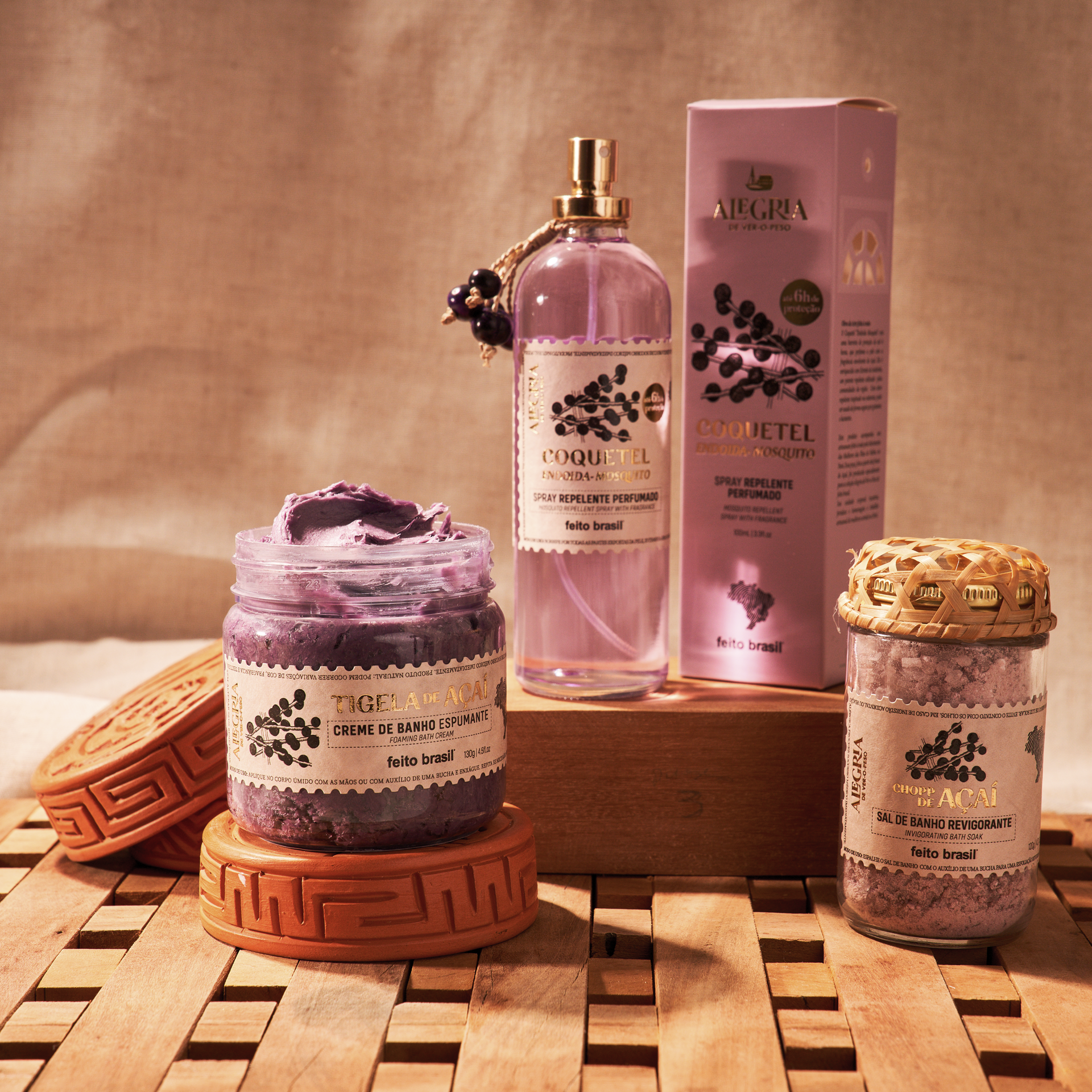 The Joy of Ver-o-Peso Collection portrays the energy and strength contained in native ingredients of the Amazon such as Açaí, Guaraná and Jambu. Through them, we created 3 complete experiences that honor local culture and history.